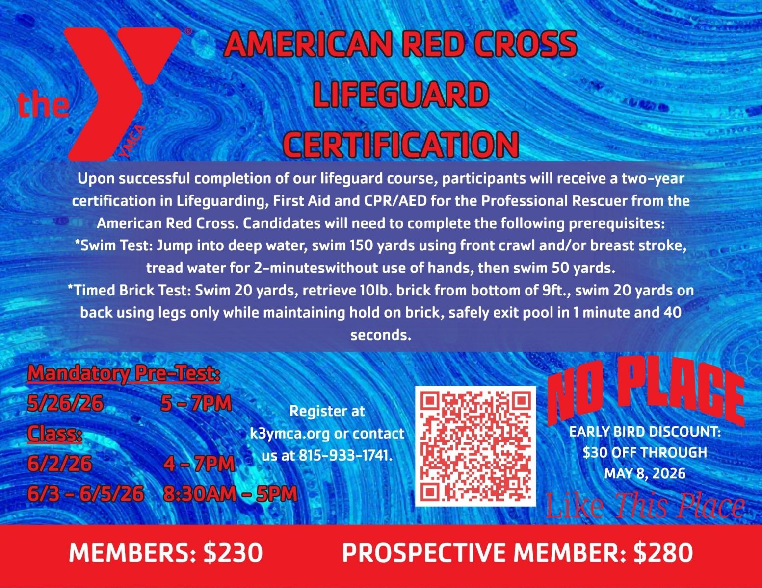 Are you getting ready for your first job, summer employment or just want to try something new? Lifeguarding is not only a fun job, but it is a great way to explore the employment options the field of aquatics offers. Lifeguards develop leadership, problem solving, decision-making and communications skills that are valuable in many areas of life. Become certified through this program that focuses on water rescue, safety, leadership development and personal growth. Upon completion, you will be qualified to work at an aquatics facility as a certified YMCA lifeguard.