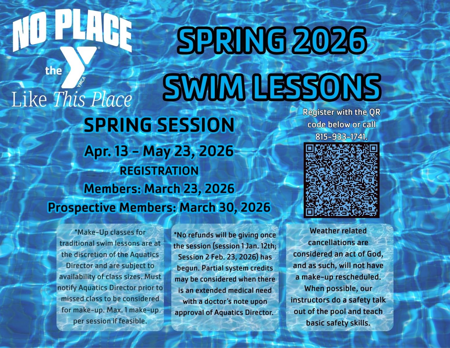 Youth Swim Lessons consist of instruction based on the National YMCA Program. Stroke development, personal safety, water sports, rescue and personal growth are included.